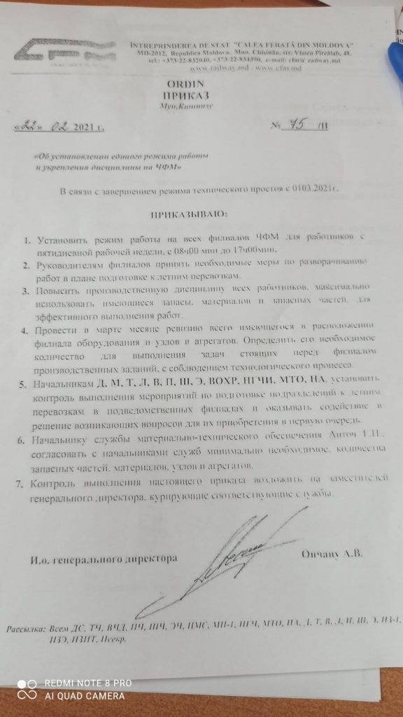 С 1 марта все сотрудники ГП «Железная дорога Молдовы» выходят из технического простоя, в котором они находились с 14 января 2021 года. Соответствующий приказ был издан издан Генеральным директором предприятия г-ном Ончану.
