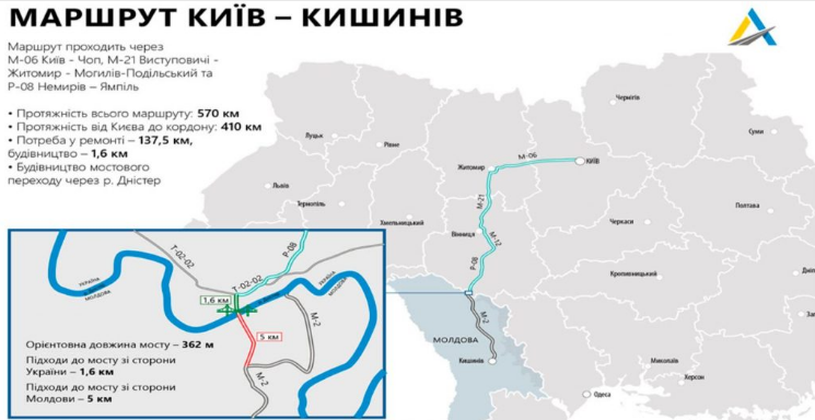 «У нас есть амбициозная идея — строительство современной магистрали, которая соединит Киев и Кишинев. С этой целью мы обсудили строительство пограничного перехода через реку Днестр. Это сократит путешествие между столицами наших государств до пяти часов», — сказал тогда президент Украины Владимир Зеленский.