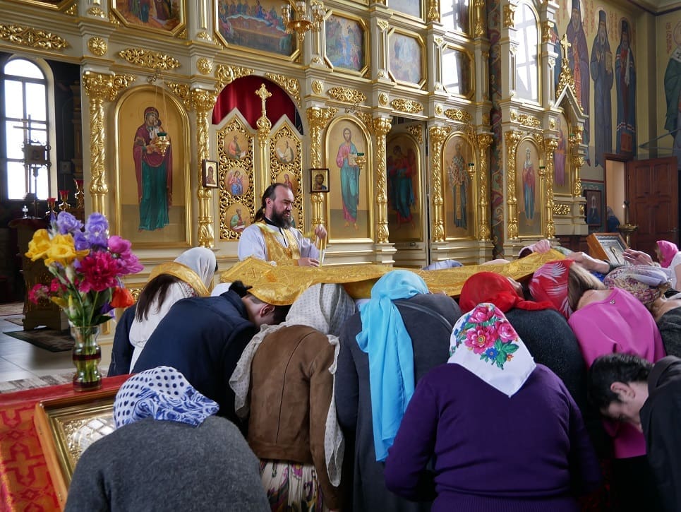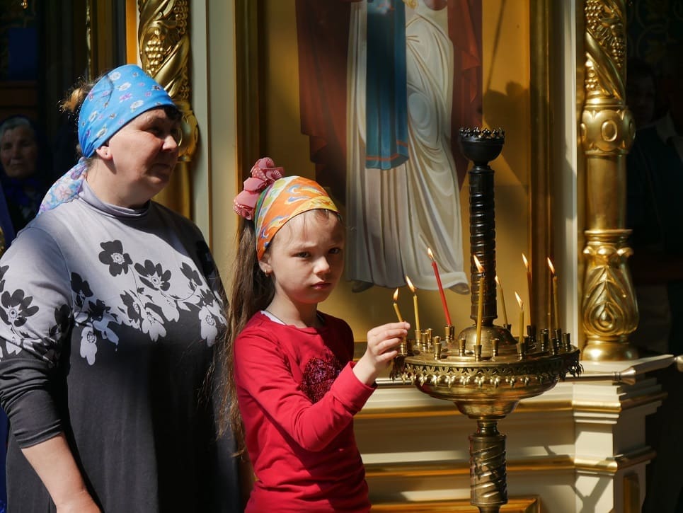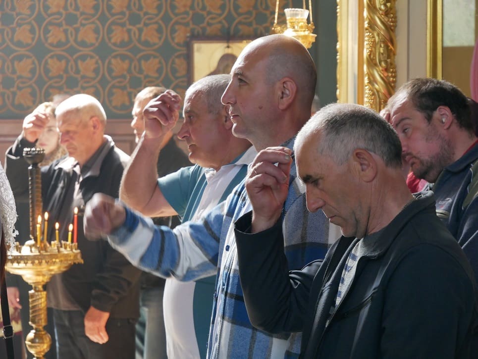 Десятки прихожан, присутствовавших на литургии, пришли в церковь, чтобы помолиться за свое здоровье и здоровье своих близких.