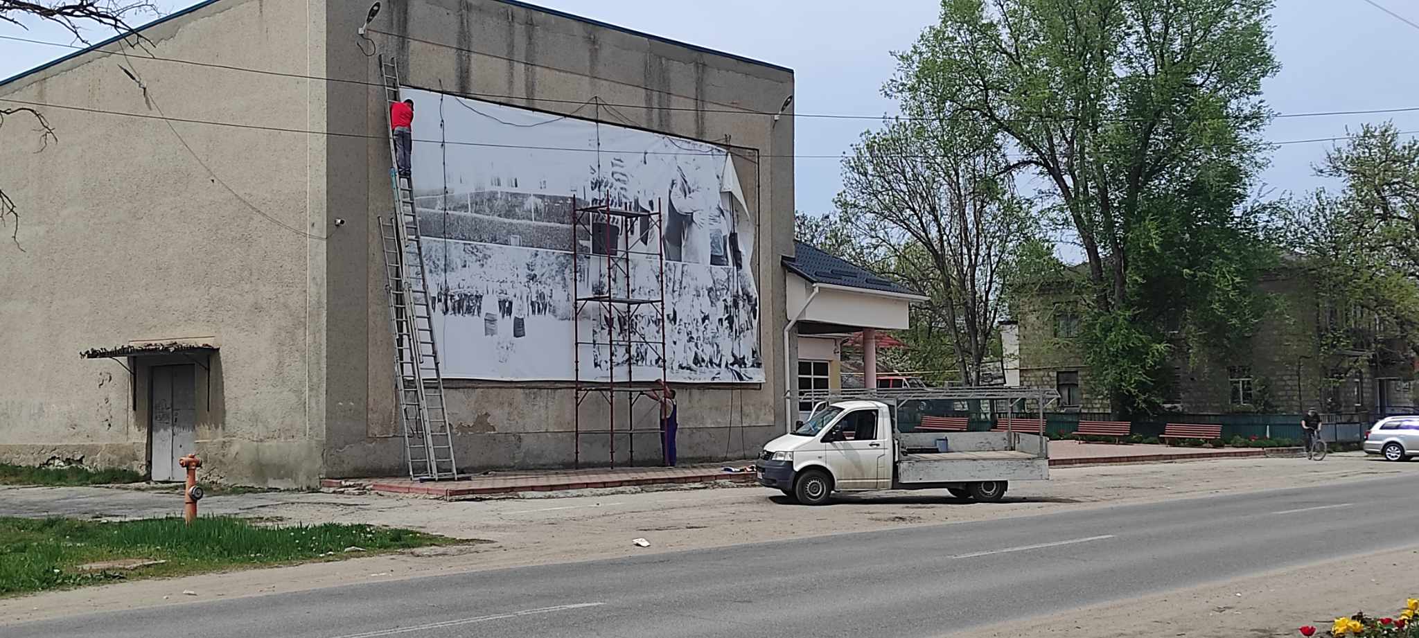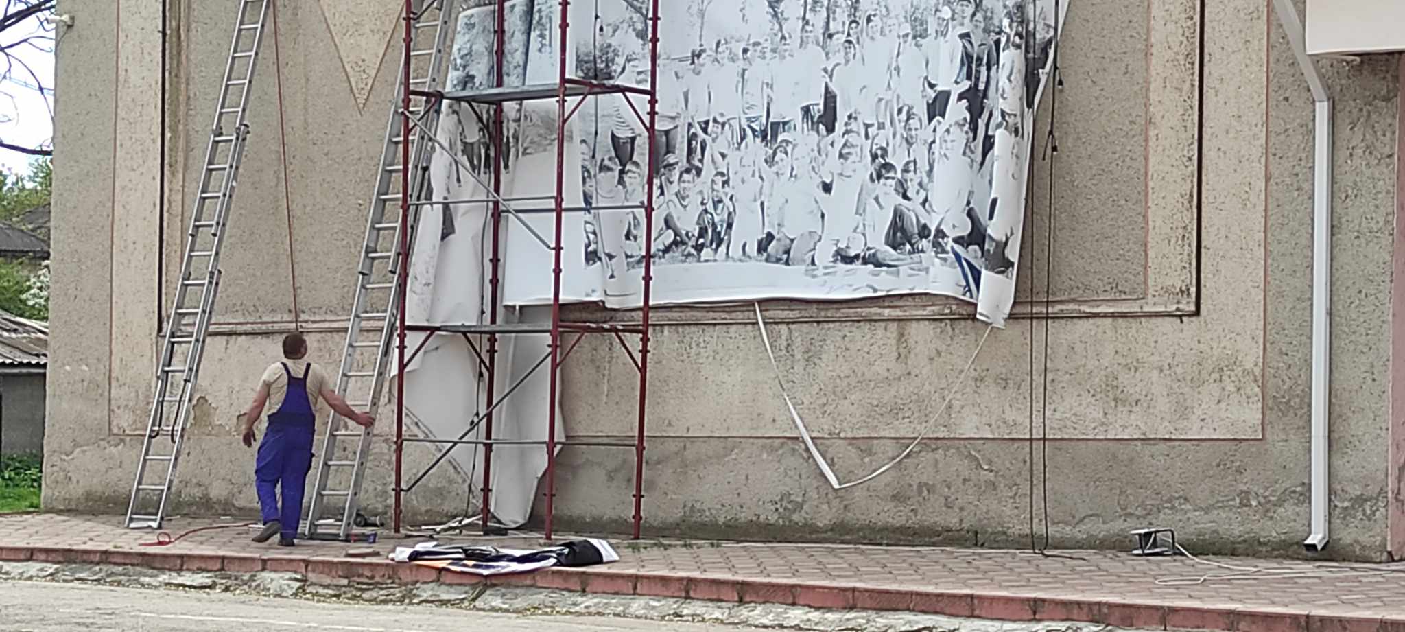 15 апреля со здания Дома культуры города Басарабяска был снят старый, изношенный баннер, висевший там последние годы. На его месте был размещен новый.