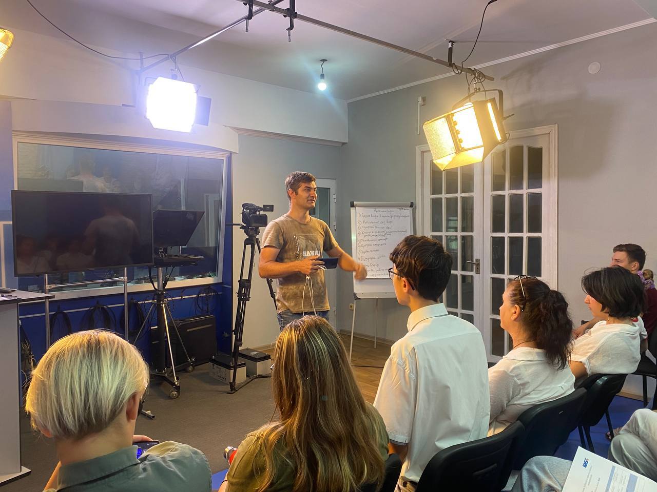 Оператор студии BAStv Евгений Гургуров провел для гостей студии мастер-класс по основам фото- и видеосъемки с помощью смартфона. Затем участники встречи разделились на три группы для съемки и монтажа гражданских репортажей.