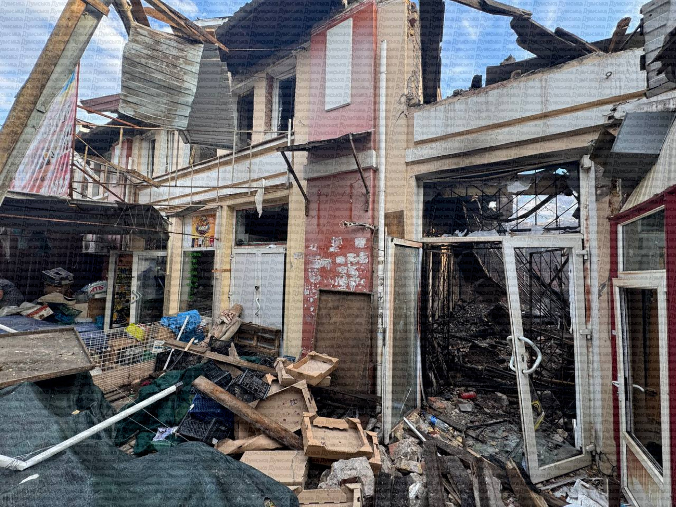 По данным корреспондента «Думской», полностью разрушен фруктовый павильон. Очевидцы в шоке, но продолжают убирать последствия и обеспечивать безопасность.