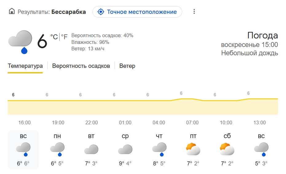 В течение всей недели в дневные часы температура будет колебаться от +7°C до +9°C. Ночью столбики термометров будут показывать от +2°C до +6°C.