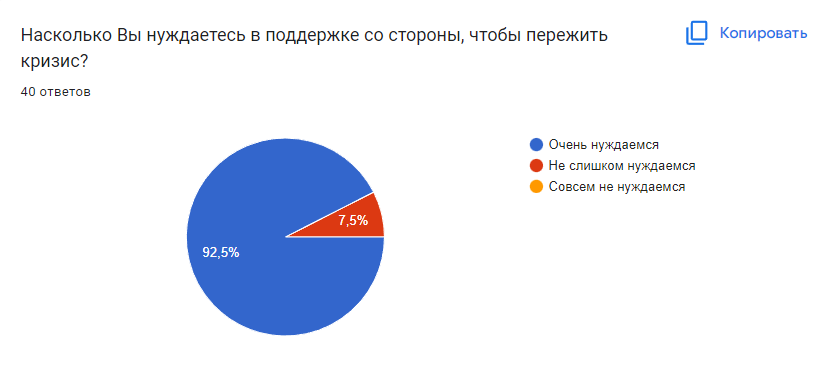 92,5% нуждаются в поддержке со стороны, чтобы пережить экономический кризис.