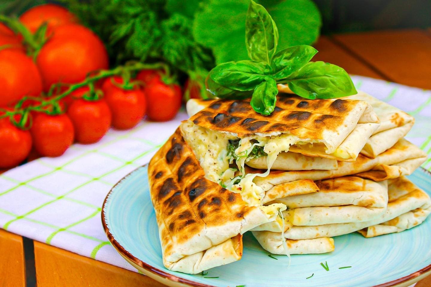 Внутри — начинка из расплавленного сыра и нескольких видов зелени. Можно подготовить её дома, чтобы на природе сделать закуску очень быстро и просто.
