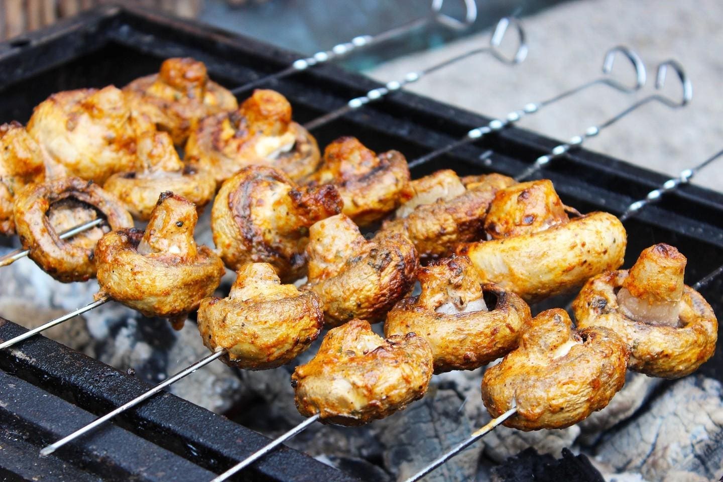 Грибы можно приготовить на шампурах или на решётке. На маринование уйдёт пара-тройка часов, но если время поджимает, хватит и получаса. Сметана и сливочное масло сделают шампиньоны очень сочными, а чеснок и паприка — невероятный аромат.