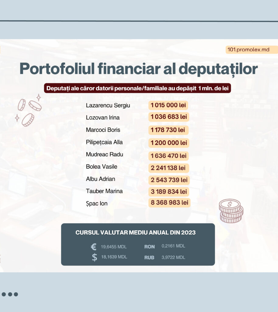 В список депутатов, чьи личные и семейные долги превысили 1 млн леев вошло 9 депутатом.