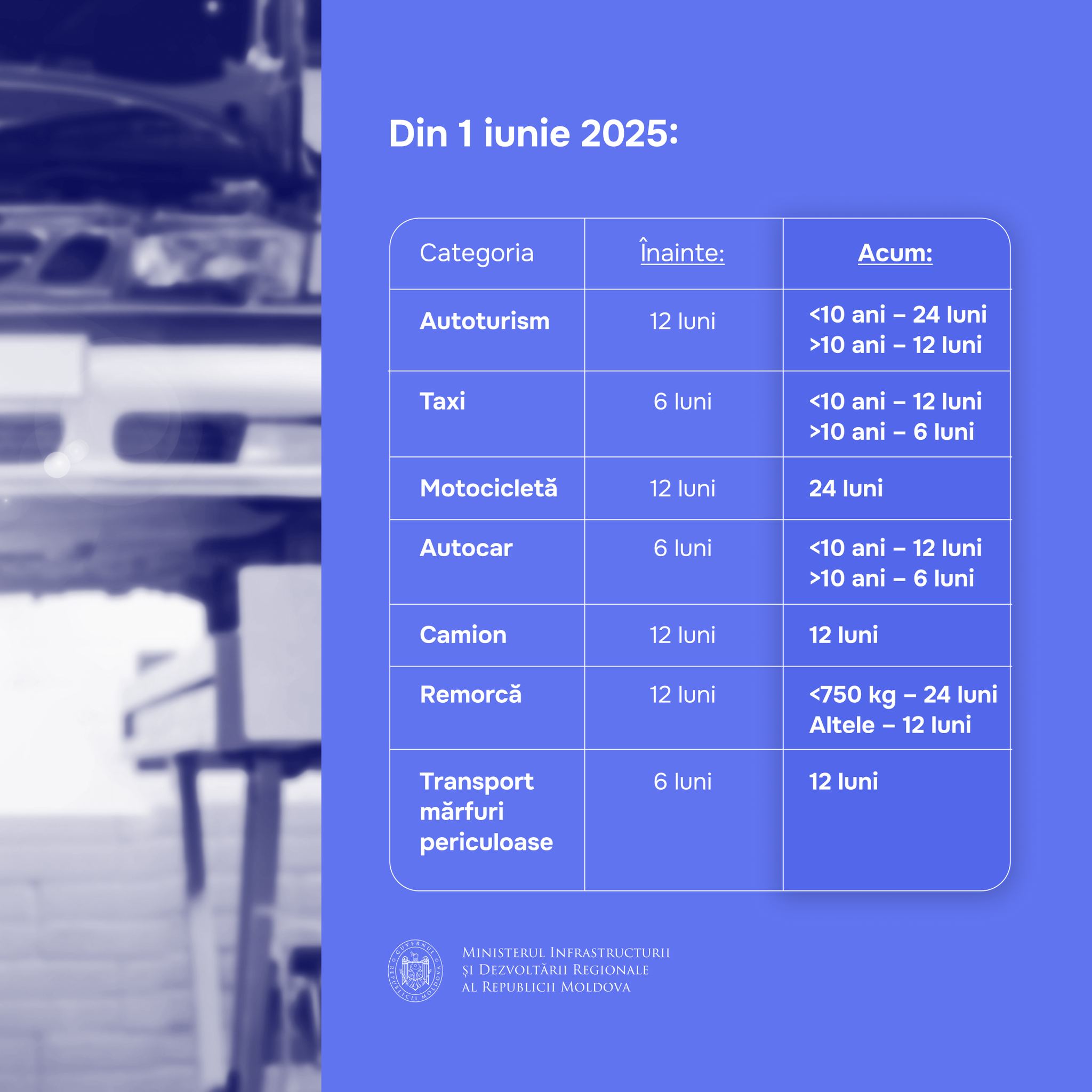Согласно документу, планируется ввести более строгие проверки состояния автомобилей и повысить стоимость прохождения техосмотра на 15–20%. Власти объясняют необходимость реформ низким уровнем выявления технических неисправностей в Республике Молдова по сравнению с другими странами, что ставит под сомнение эффективность текущей системы.