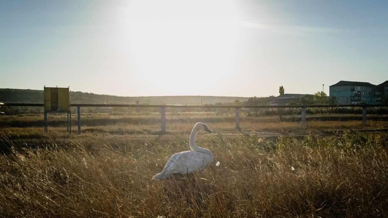 Погрузитесь в атмосферу юга Молдовы, собирая этот пазл с удивительным моментом, запечатлённым в Басарабяске. На снимке — лебедь, неожиданно оказавшийся среди сухих степных трав, в золотом сиянии заходящего солнца. Просторные поля, тихий свет и лёгкое мерцание растительности создают почти кинематографическую сцену.
