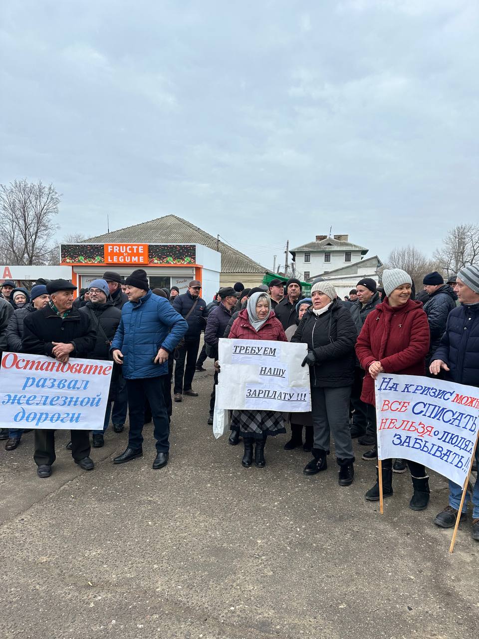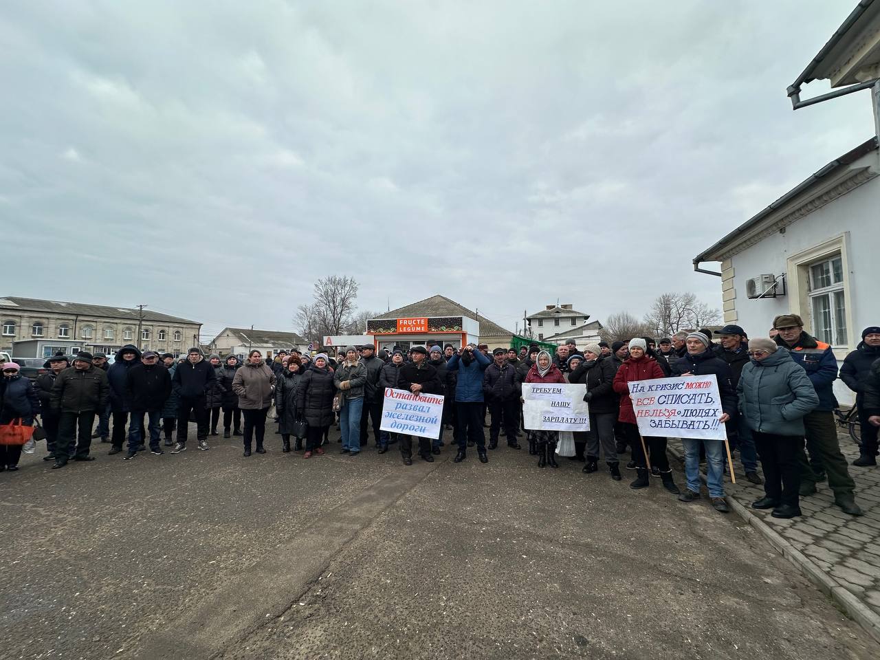 С 10:00 на площади перед ж/д вокзалом начался протест железнодорожников, организованный представителями профсоюзов ж/д узла Басарабяска.