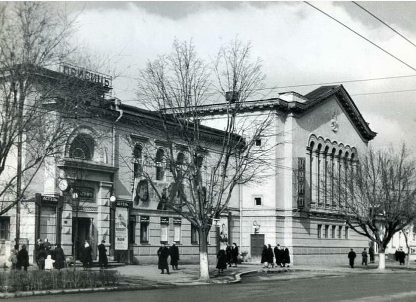 Sursele scrise confirmă că clădirea a intrat în perioada sovietică în stare ruinată, pe locul căreia a fost construit cinematograful „Patria”, conform proiectului arhitectului sovietic Valentin Voițehovschi (1909–1977). Arhitectul povestea studenților săi despre aprecierea înaltă dată planimetriei confortabile a clădirii de către muncitori în timpul construcției. În fișa biografică de la Arhiva UTM, printre lucrările sale profesorul V. Voițehovschi a menționat și „cinematograful «Patria», anul 1951”.