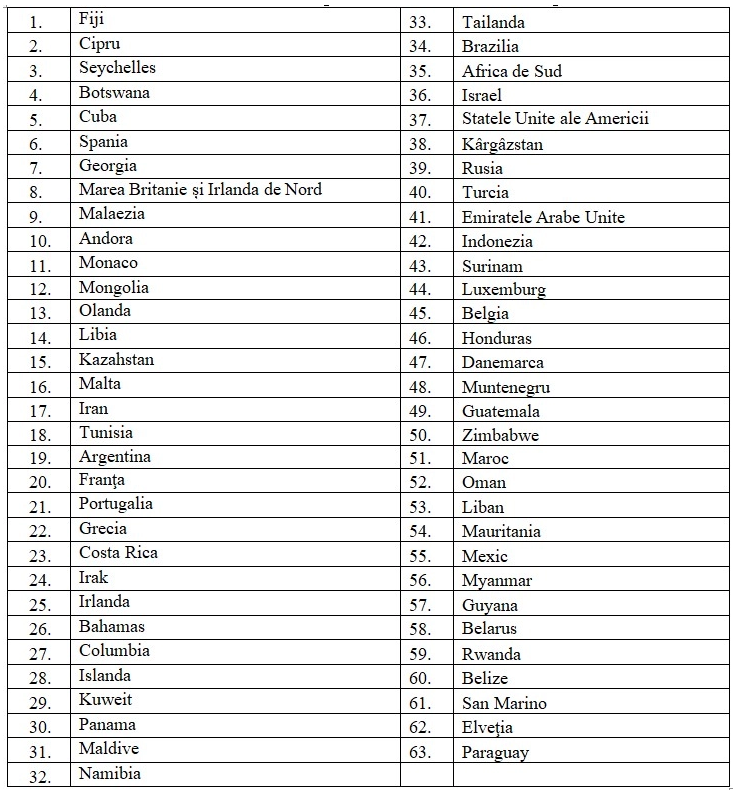 Pe lângă Turcia, în listă au mai fost incluse Islanda, Muntenegru, Maroc, Mauritania, San Marino și Elveția.