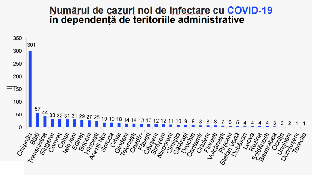 Din numărul total de cazuri, 10 sunt în rândul lucrătorilor medicali: (2-medici, 4-asistenți medicali, 4-personal auxiliar).