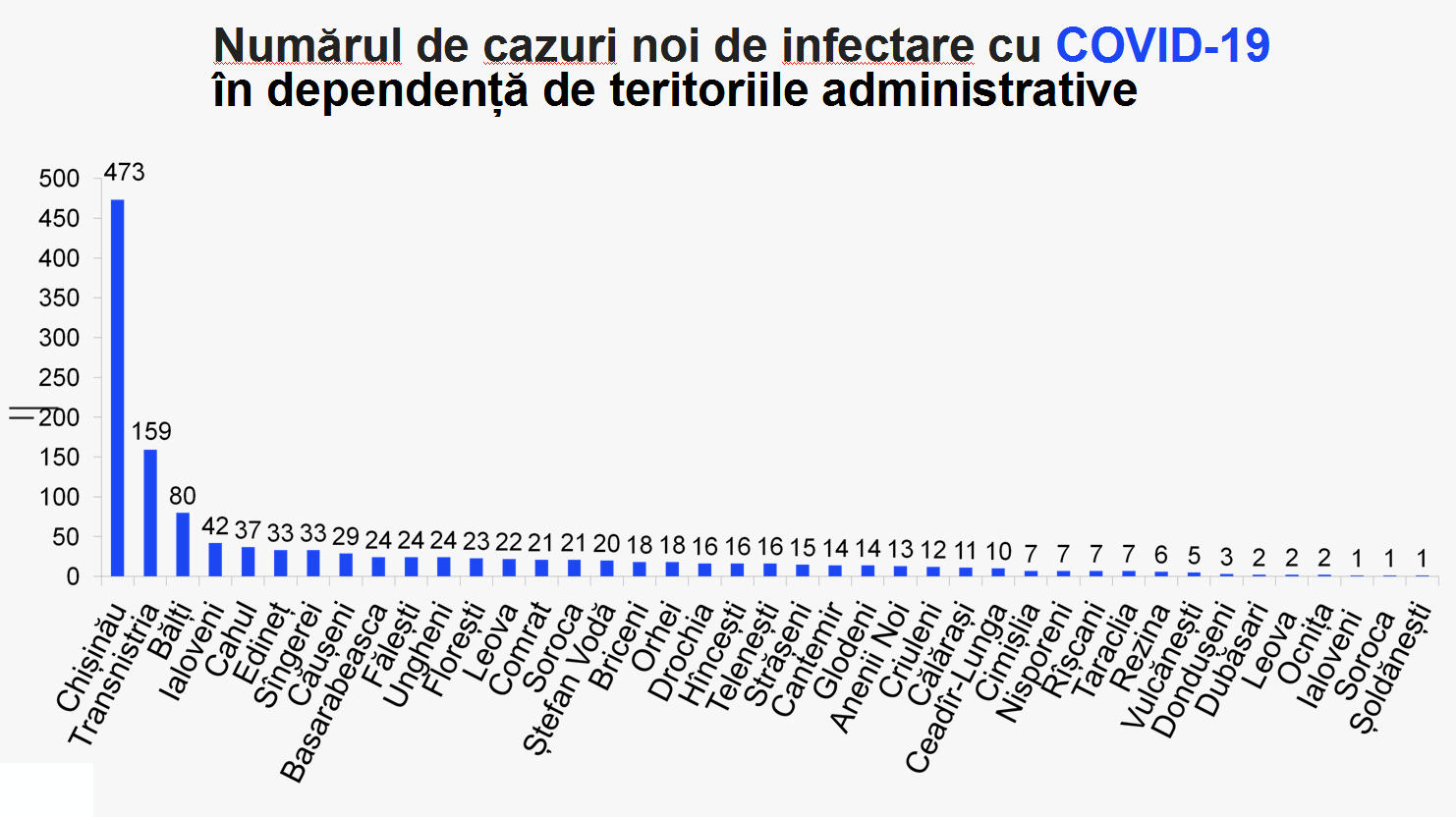 Basarabeasca având 24 de cazuri fiind un nou record de infectări COVID-19