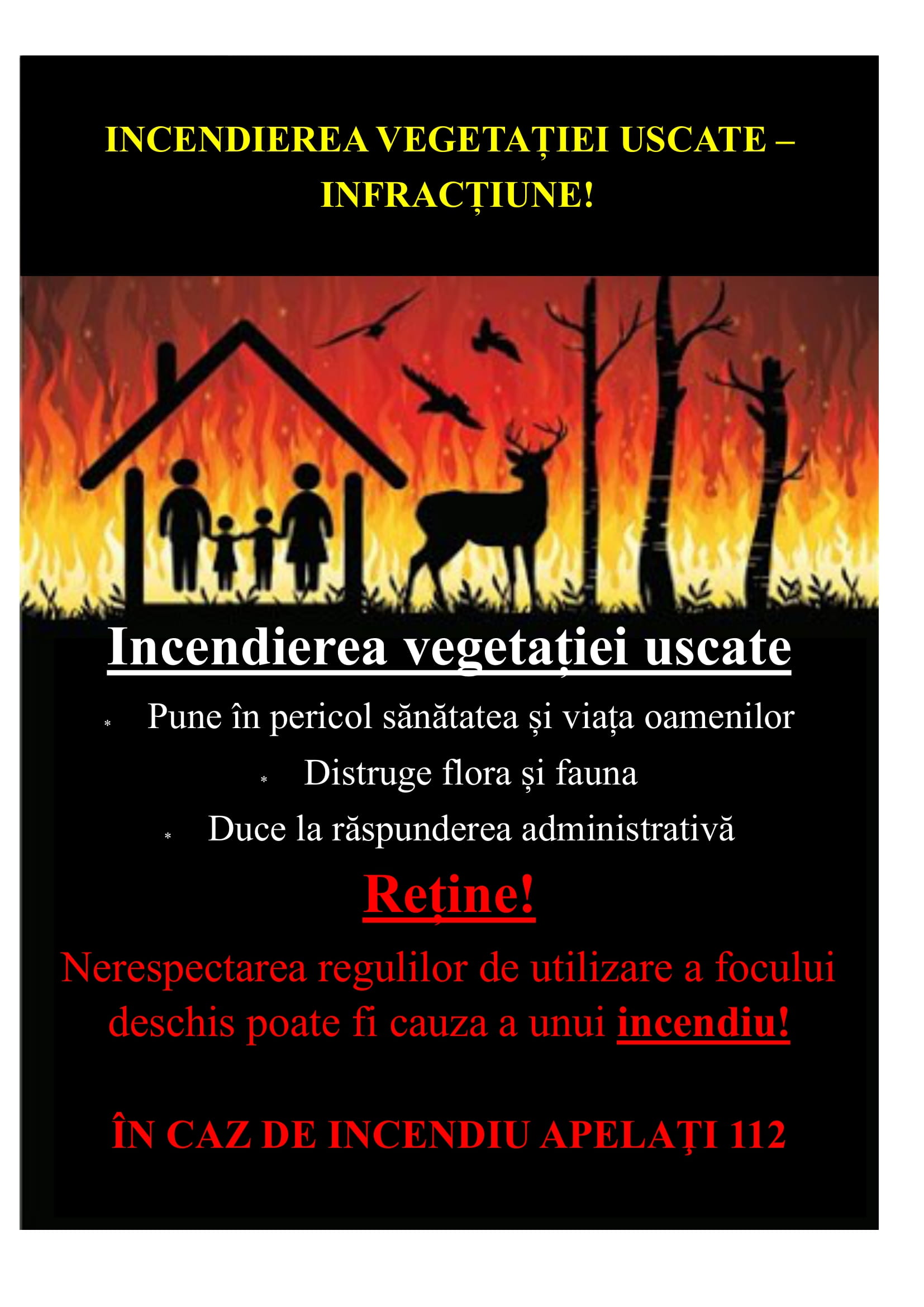 • nu aruncați mucuri de țigară, chibrituri aprinse sau materiale care mocnesc în vegetația uscată;