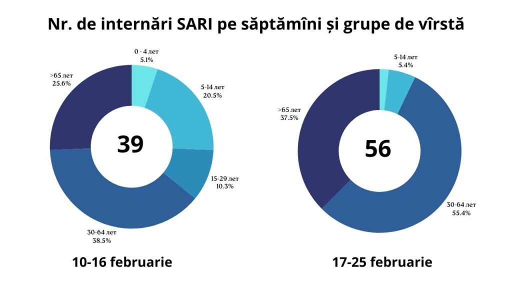 În ciuda scăderii cazurilor de IACRS, numărul complicațiilor din cauza infecțiilor respiratorii acute severe (SARI) continuă să crească. În perioada raportată, au fost confirmate 56 de cazuri, aproape dublu față de săptămâna precedentă, când au fost înregistrate 39 de cazuri.