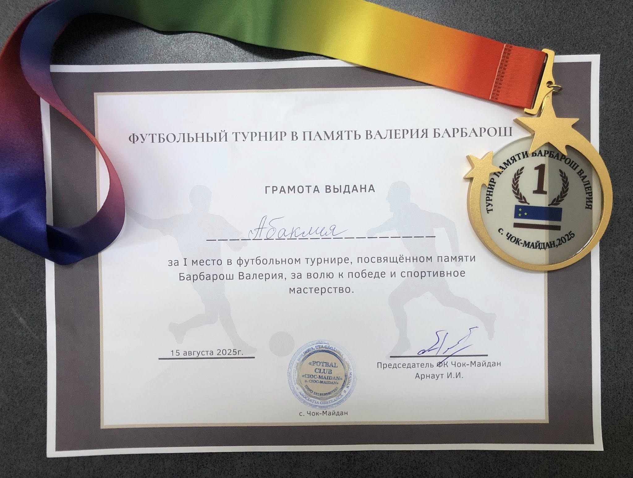 Pe 15 august 2025, pe stadionul cu iarbă sintetică din satul Cioc Maidan, s-a desfășurat un turneu amical de fotbal între copii, dedicat memoriei lui Valerii Barbaros. La competiție au participat trei echipe: Cioc Maidan, Basarabeasca și „Gloria” Abaclia.