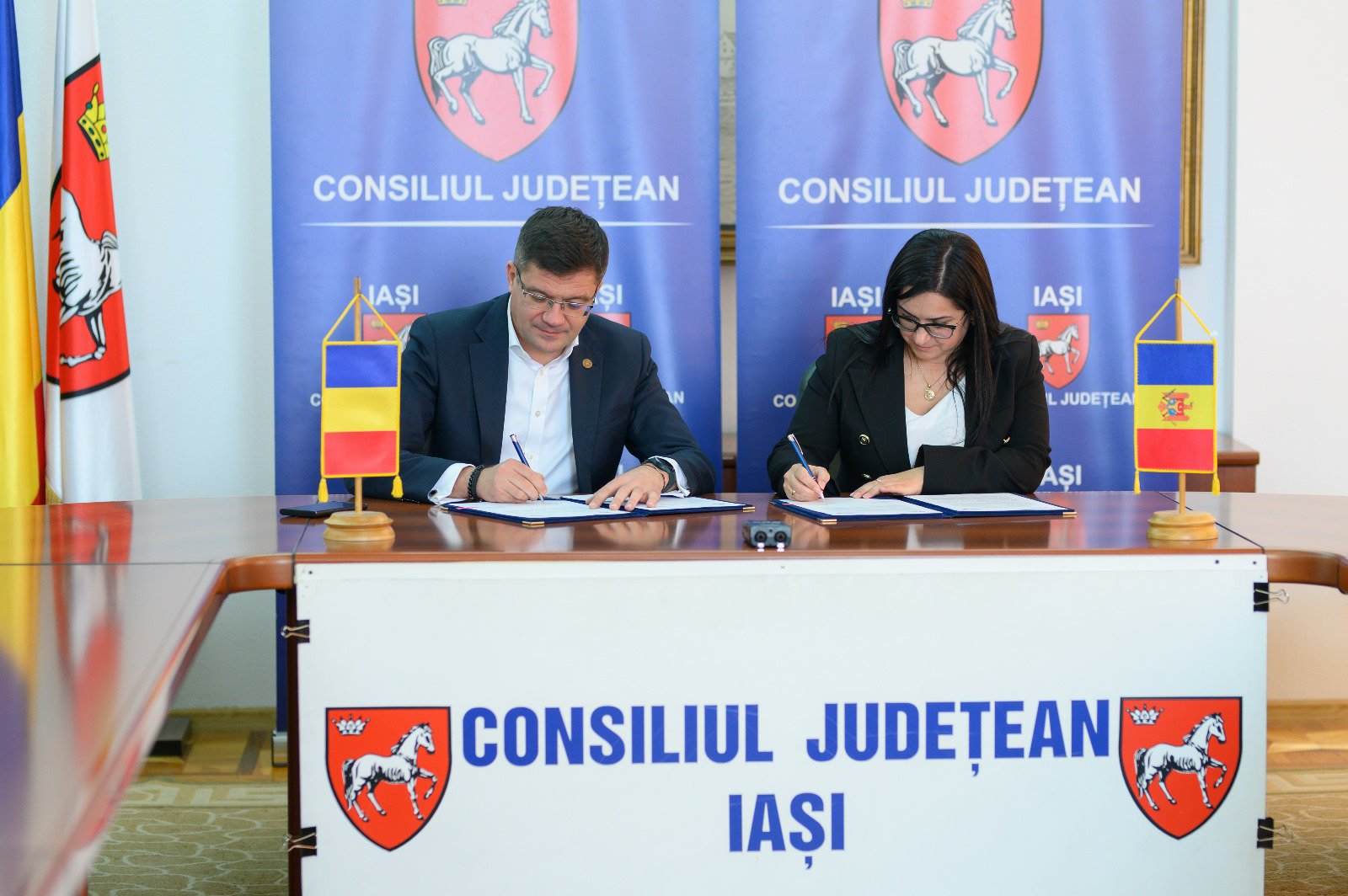 Acordul de cooperare, semnat de președintele Județului Iași, Costel Alexa și președinta raionului Basarabeasca, Natalia Cara, are scopul de a identifica proiecte de dezvoltare economică, socială, proiecte care pot beneficia de susținere financiară a Uniunii Europene și implementarea lor comună.