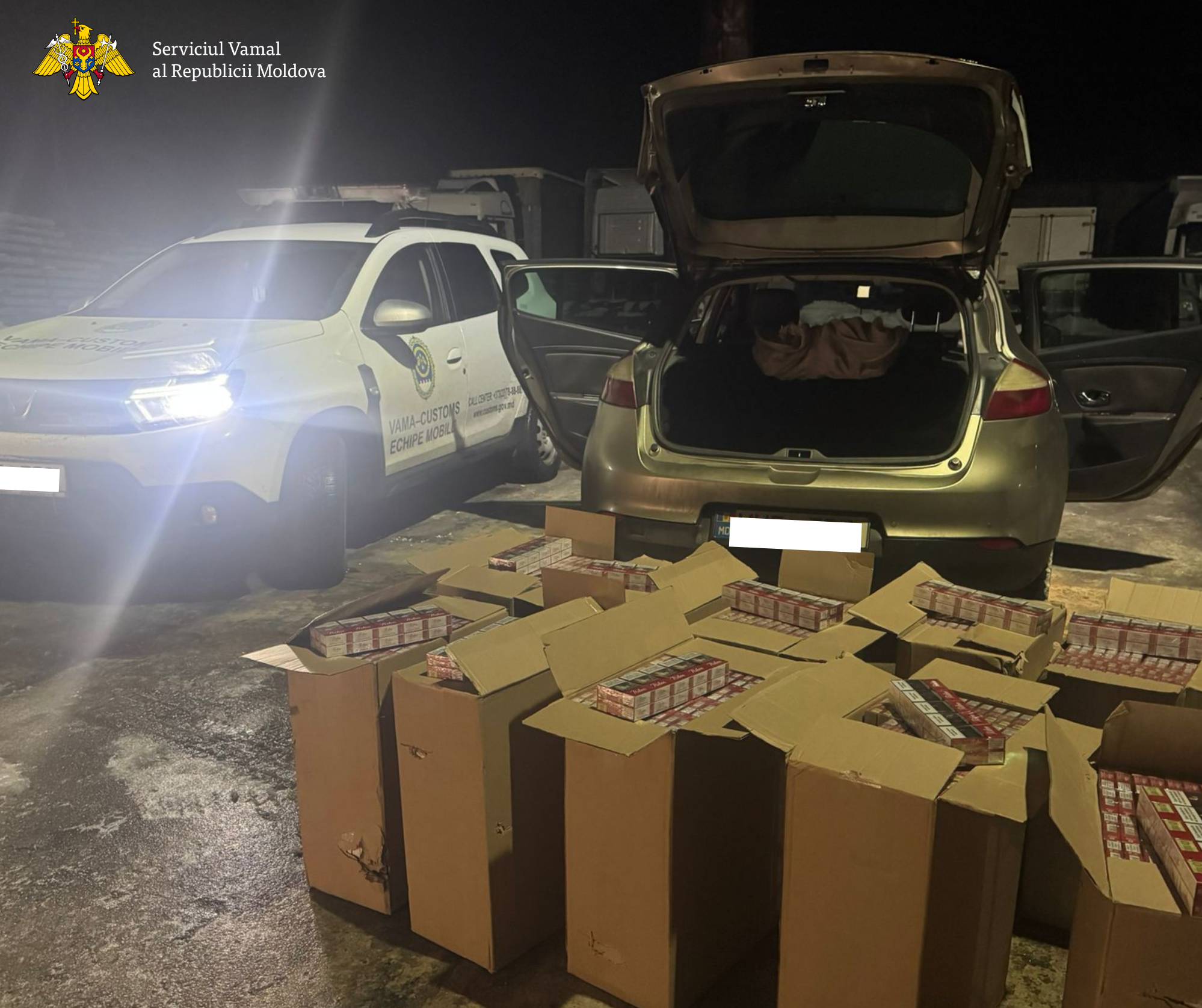 În urma controlului vamal dispus, atât în compartimentul marfar, cât și în habitaclul automobilului, au fost depistate cutii de dimensiuni impunătoare, pline cu țigarete. Produsele nu erau însoțite de documente care să confirme proveniența lor legală. În total, au fost descoperite circa 100 000 de țigarete.