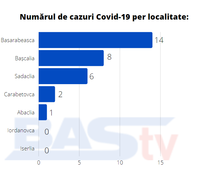 Pe baza dimensiunii populației, cea mai mare rată de infectare a fost observată în Bașcalia, Sadaclia, Carabetovca.