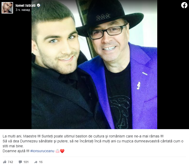 Cu această ocazie, interpretul Ionel Istrati a scris un mesaj, în care îi urează maestrului „La mulți ani”.