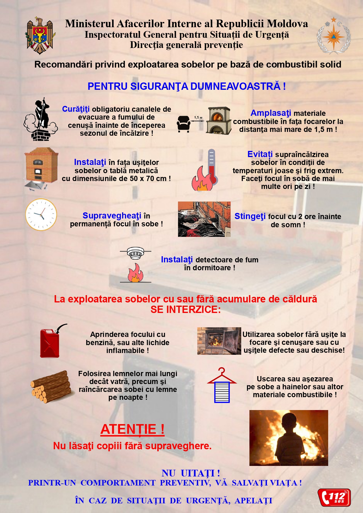 - Supravegherea copiilor și interzicerea uscării hainelor pe sobe;