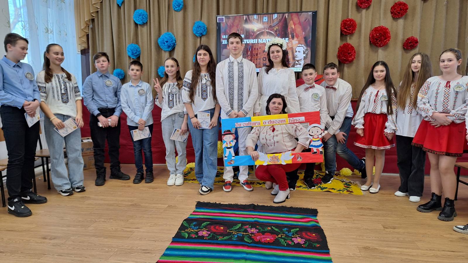 Elevii și profesorii Liceului Teoretic „Matei Basarab” au transformat ziua de 15 ianuarie într-o adevărată pledoarie pentru frumusețea spiritului românesc. Activitățile au inclus recitări din creațiile eminesciene și un T.V.C. tematic intitulat „Cu cultura o ducem bine…”, organizat de elevii clasei a VII-a, sub îndrumarea dirigintei Aliona Țăranu. De asemenea, elevii au celebrat și printr-o impresionantă paradă a portului tradițional.