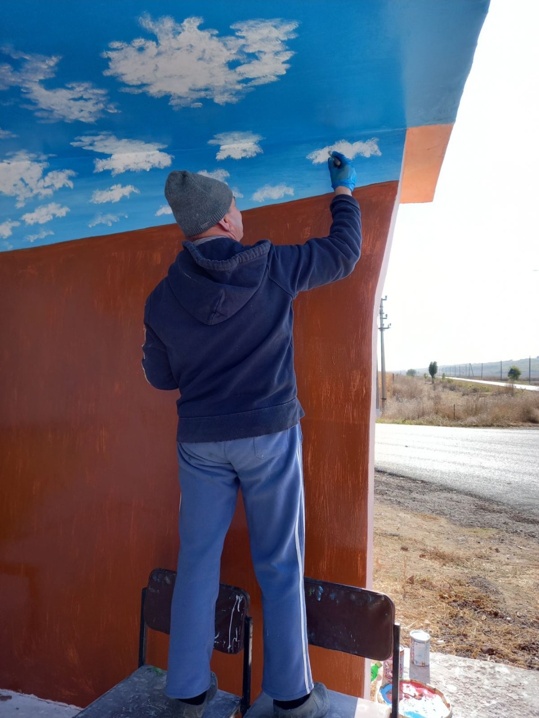 Are în palmares aproximativ 500 de lucrări, printre care se numără și una mai deosebită, realizată în tehnică 3D. A văzut mai multe exemple pe internet și a decis să creeze ceva neobișnuit pentru satul său natal. A pictat un tanc pe garajul propriei case, a cărei țeavă a tunului se mișcă în direcția spre care merge o persoană. Spune că i-a fost puțin greu, dar s-a descurcat.