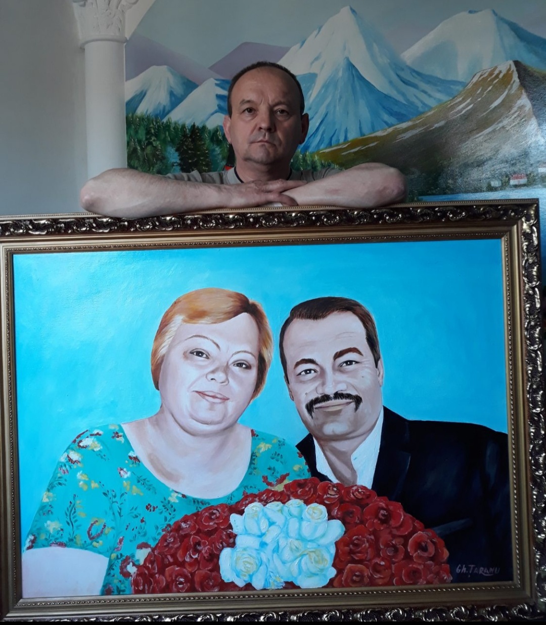 La început, picta doar porți, dar a trecut și la pictatul pe garaje și pe pereții din interiorul caselor. Totuși, cel mai mult, ne spune Gheorghe,  îi place să  facă portrete.