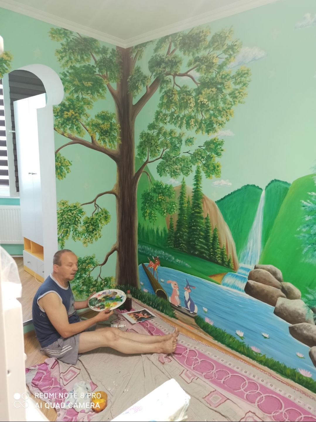 De obicei, la orice tip de pictură, fie că este vorba despre o poartă, un portret sau un perete, lucrează în jur de trei-patru zile, iar temele pe care le abordează sunt inspirate de imagini pitorești.