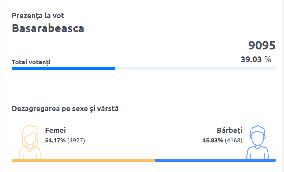 În satul Bașcalia, raionul Basarabeasca, prezența la urne a fost de doar 25,73%, cea mai redusă rată de participare dintre toate localitățile implicate în alegerile locale de astăzi. Din totalul celor 2 818 alegători înscriși în liste, doar 725 de persoane s-au prezentat la secția de votare. La polul opus, cea mai mare rată de participare s-a înregistrat în satul Ustia, raionul Glodeni, unde la urne s-au prezentat 53,72% dintre alegători și în comuna Cremenciug din raionul Soroca – de 52,74%.