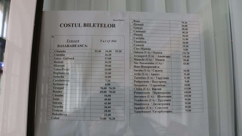Сколько стоит проезд до определенного населенного пункта на автобусе или маршрутном такси, отправляющемся с автостанции г. Басарабяска? Эта информация представлена ниже.