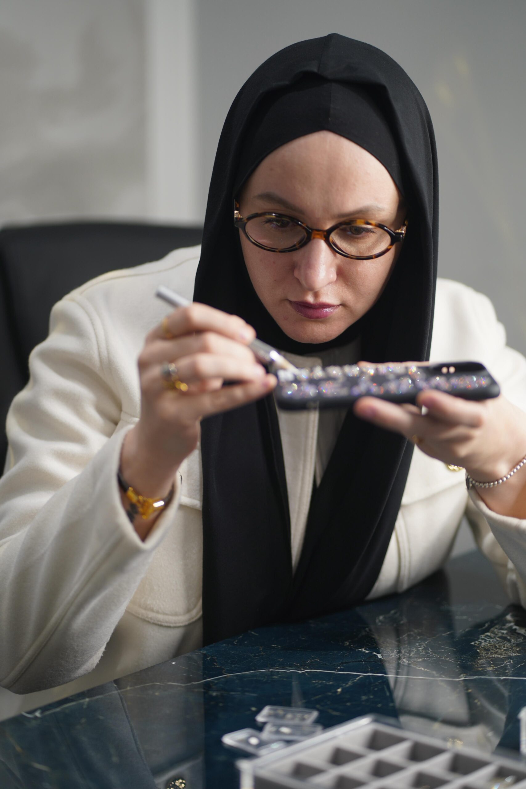 Я сделала всё, как он сказал. Первый чехол продал мой супруг. Я радовалась, как ребёнок! Но вместе с радостью пришли и первые трудности: кристаллы отлетали, техника была неотработанной. Учиться было не у кого — в этой нише я была почти первопроходцем. Пришлось всё постигать самой: на ощупь, с ошибками, с ночами проб и ошибок.