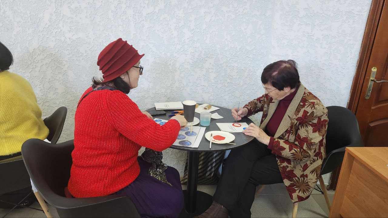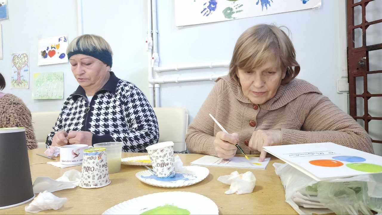 Кисти, краски, немного фантазии и простые навыки рисования – всё, что нужно участницам мастер-класса по арттерапии. Мероприятие направлено на поддержку психологического здоровья людей в возрасте и вынужденных переселенок из Украины.