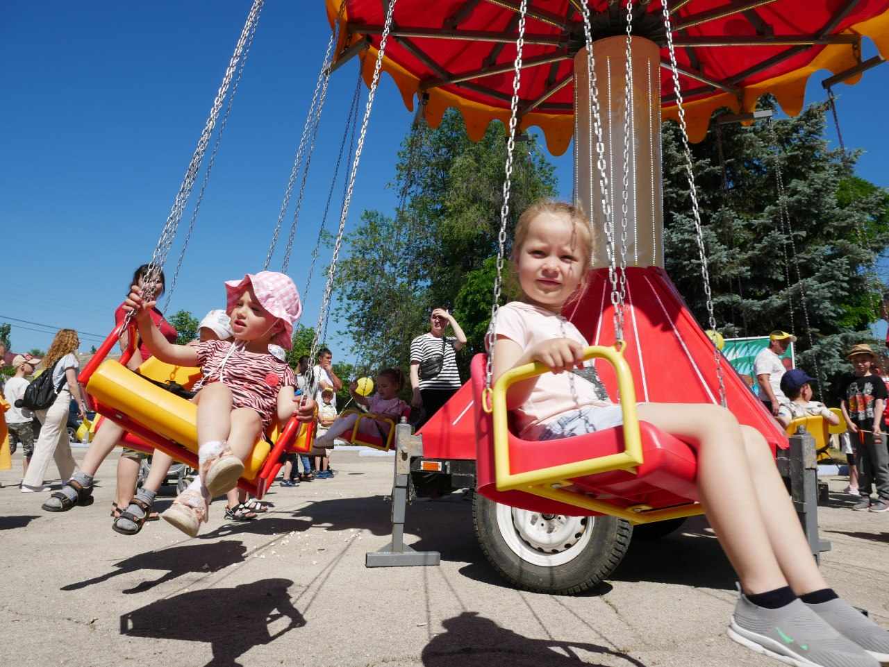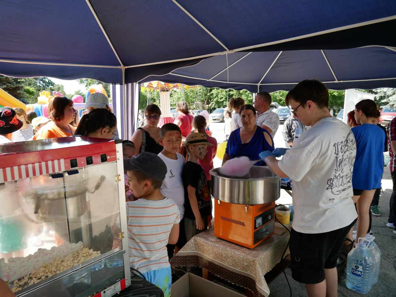 Мероприятие сопровождалось концертом, а для маленьких участников установили батуты, надувные горки и ларек со сладостями, которыми детей угощали бесплатно.