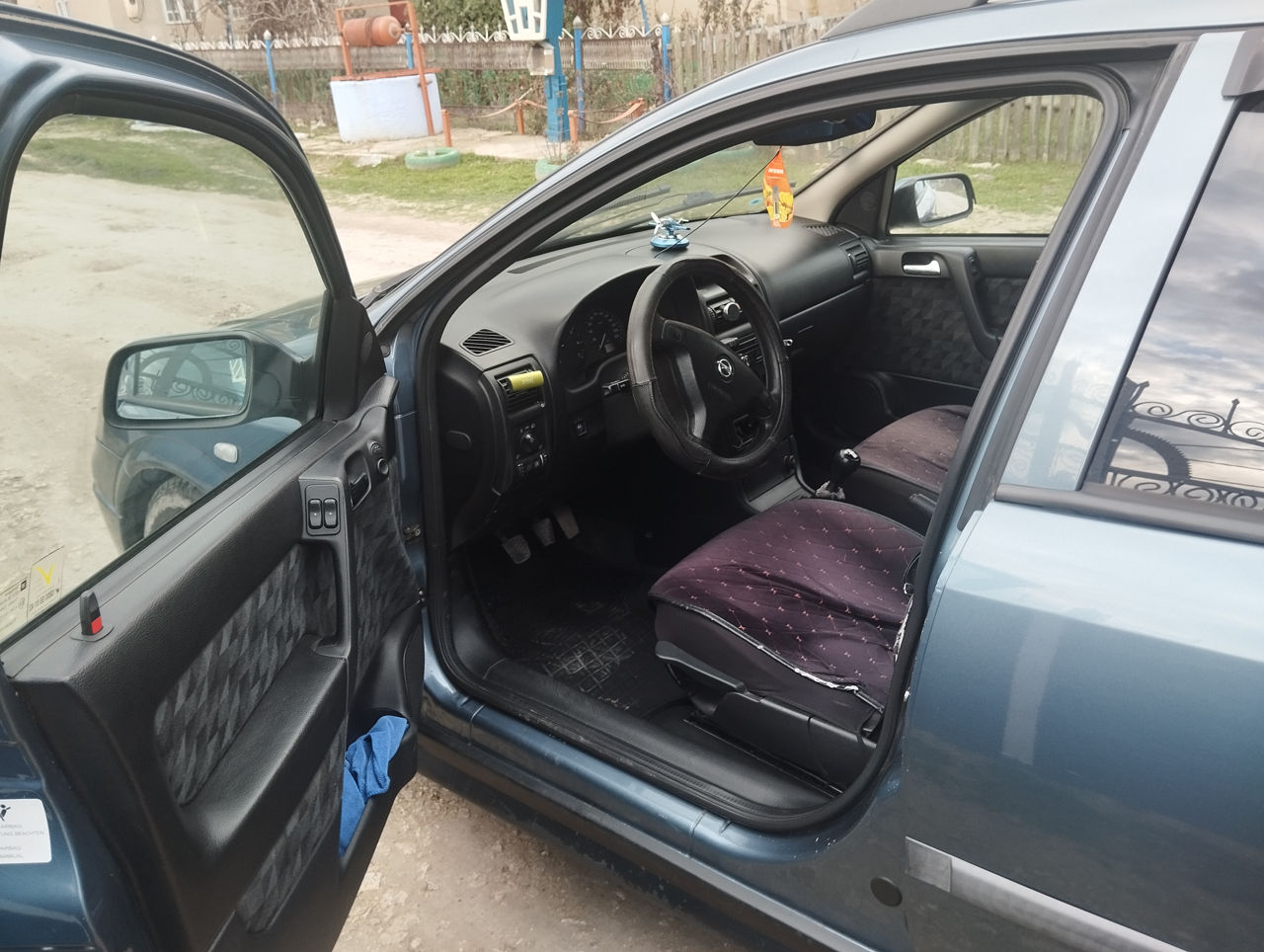Opel Astra поколения G, 2001 года выпуска, с кузовом универсал. Оснащён двигателем объёмом 1,4 л мощностью 110 л.с., механической коробкой передач и передним приводом. Работает на бензине и газе (пропан).