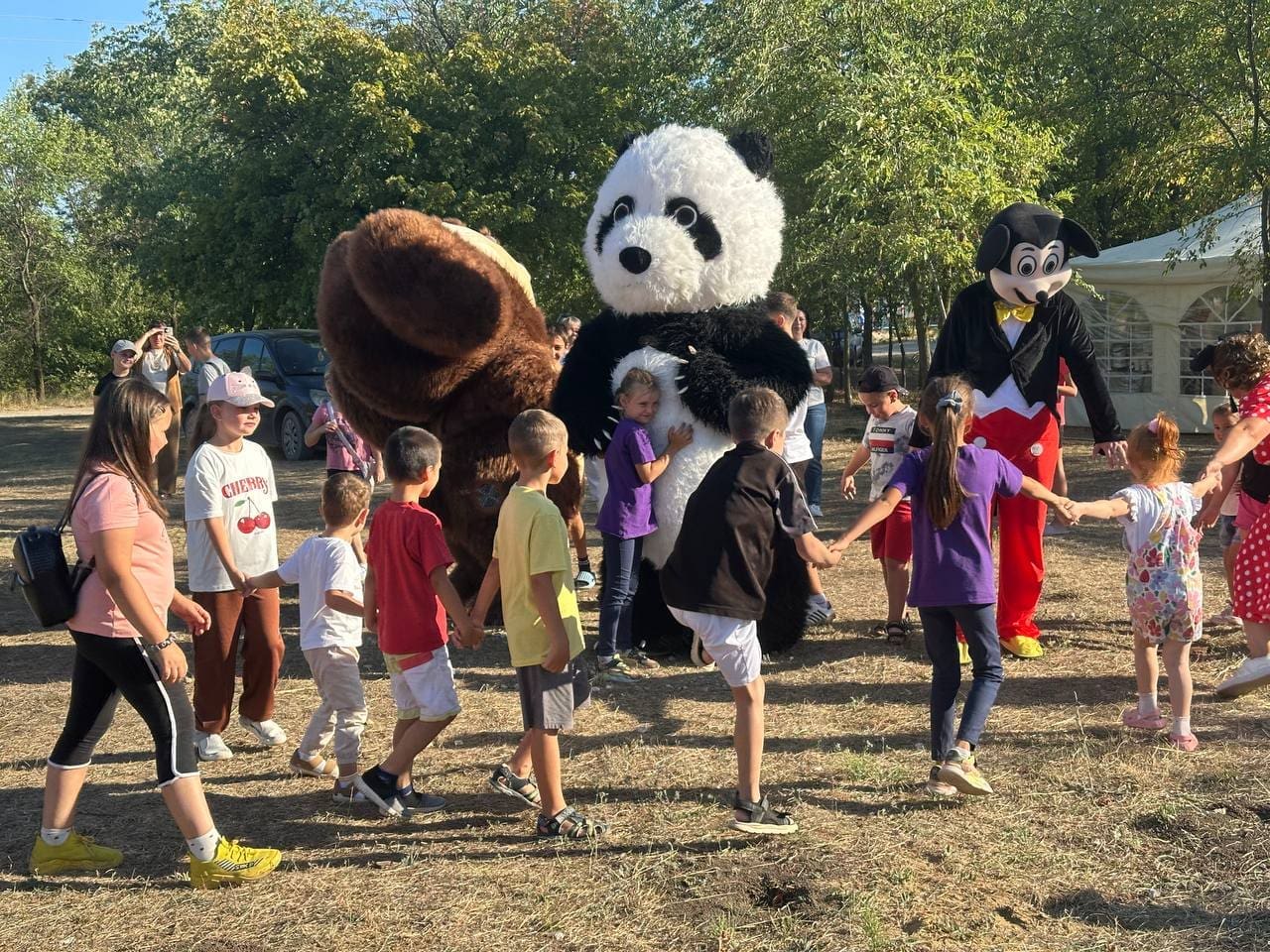 Аниматоры в костюмах Микки Мауса, панды и Чебурашки моментально завоевали симпатию ребят. Дети с восторгом фотографировались с любимыми персонажами, танцевали и принимали участие в конкурсах.