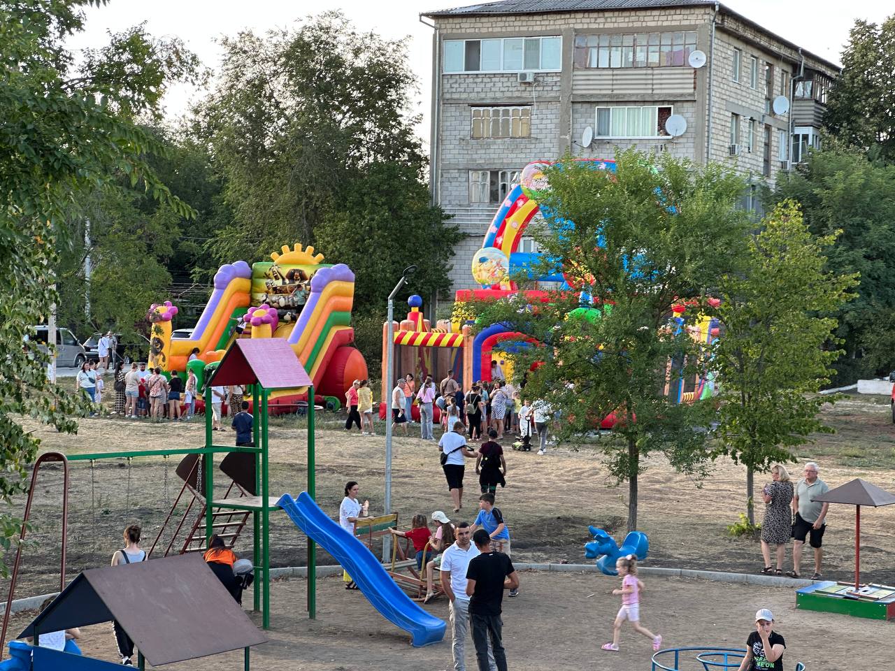 Праздничная программа стартовала в 11:00 на центральной площади. Здесь были организованы творческие и развлекательные зоны: мастер-классы по рисованию и изготовлению поделок, аквагрим, батуты, тарзанки и другие активности. Маленькие участники с удовольствием принимали участие в мастер-классах, пробовали себя в роли художников и мастеров, наслаждались атмосферой и угощались сладкой ватой.