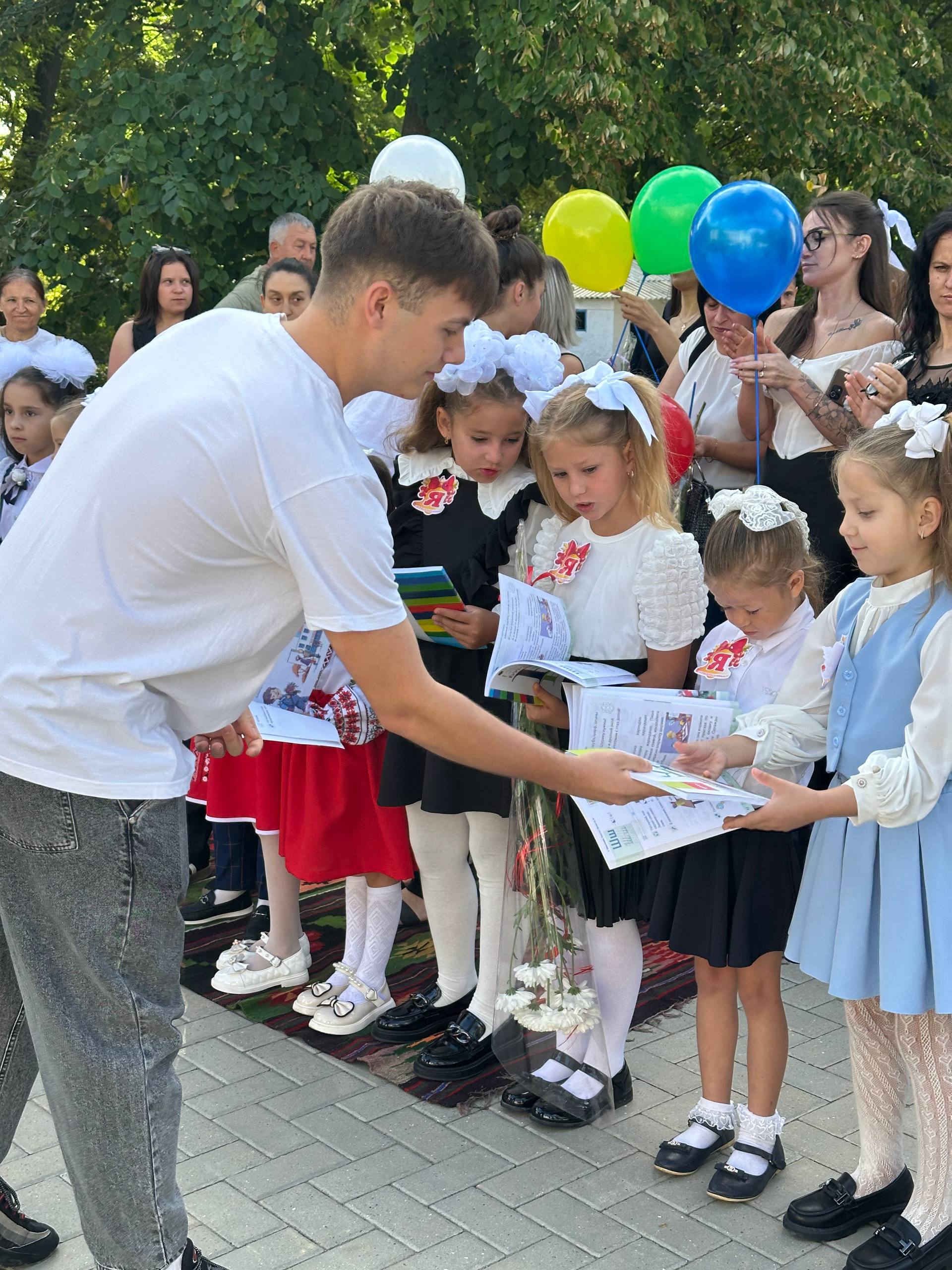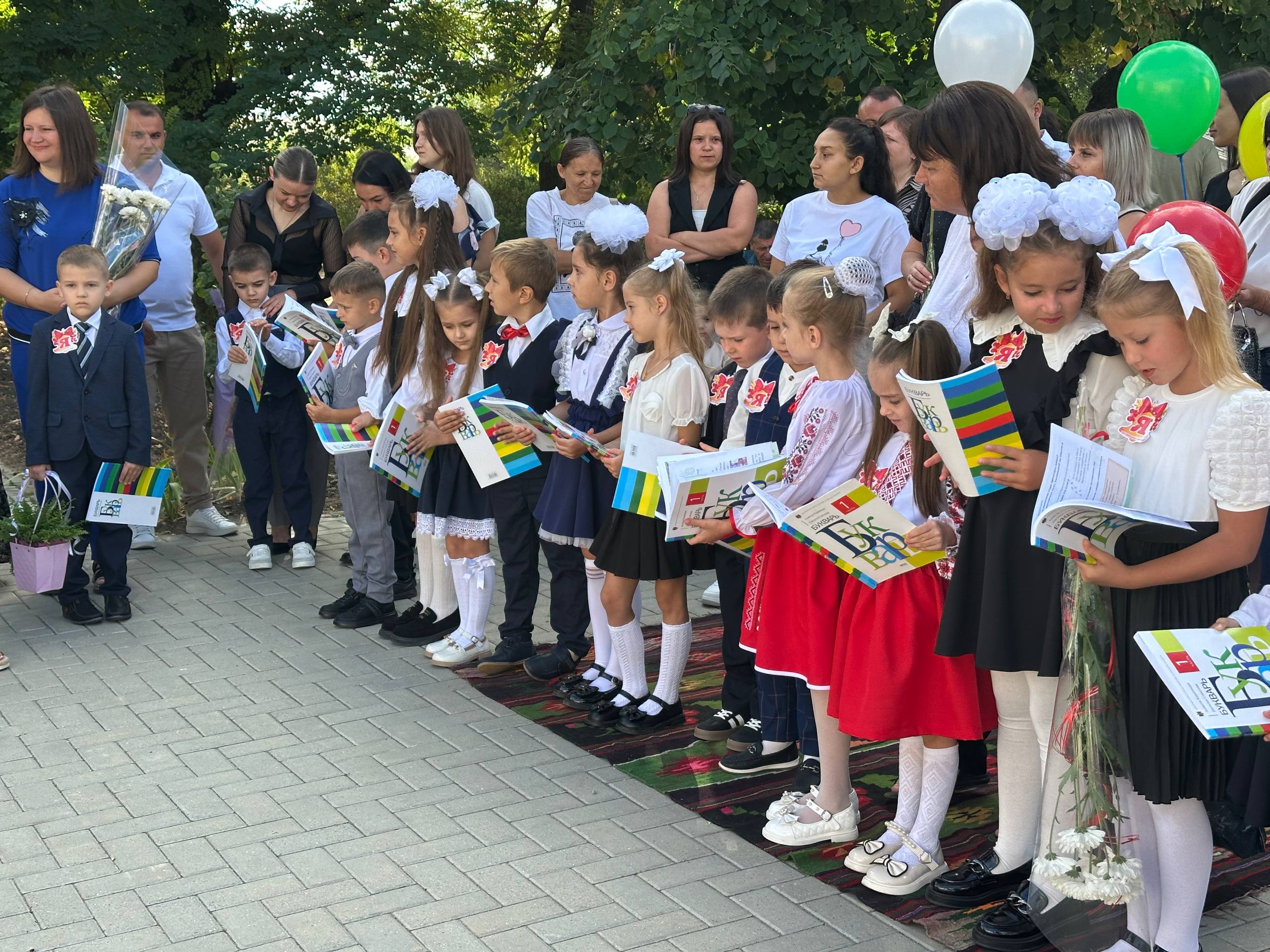 Торжественно по ковровой дорожке, за руку со своими родителями учащиеся первого класса лицея «Н.Гоголь» города Басарабяска проходят на линейку по случаю начала учебного года. Здесь их с хлебом и солью встречает классный руководитель Раиса Данько.