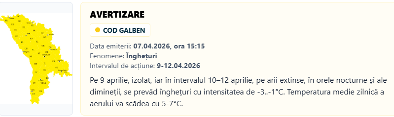 В Молдове объявлен «жёлтый код» из-за заморозков