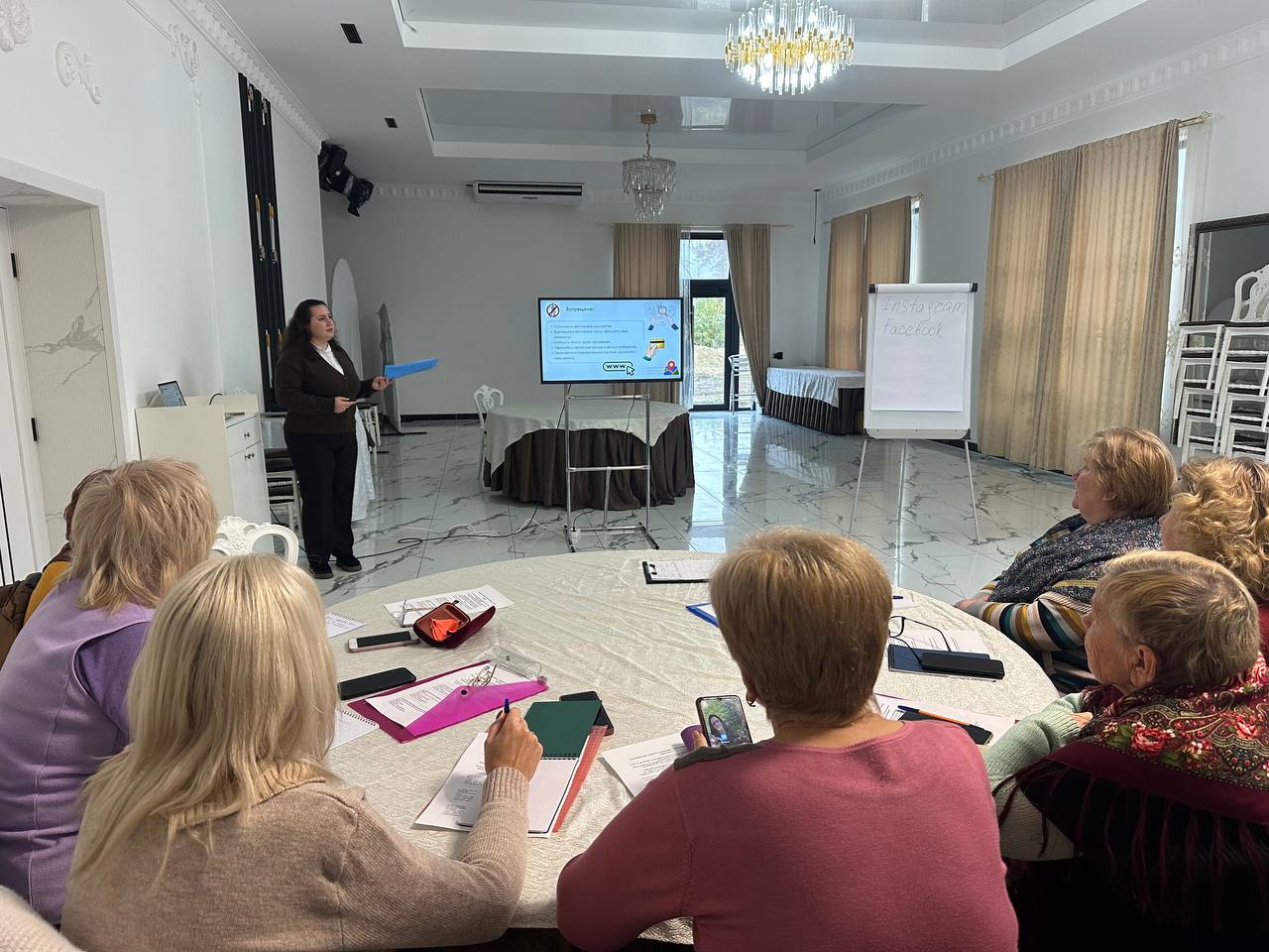 В Басарабяске продолжилась серия обучающих встреч в рамках проекта «Голоса женщин Басарабяски: преодоление стереотипов и укрепление сообщества», реализуемого при поддержке Министерства культуры Республики Молдова. Второй тренинг вновь собрал женщин разных возрастов, которые хотят приобрести цифровые навыки, научиться свободно чувствовать себя в социальных сетях и уверенно работать с фото и видео на телефоне.
